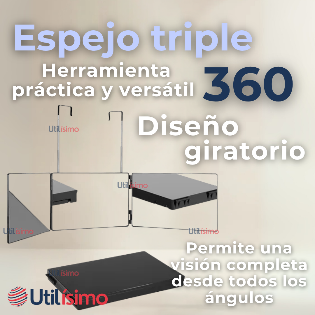 El espejo triple con diseño giratorio de 360 grados es una herramienta innovadora que transforma la experiencia de peinarse y cortarse el cabello en casa. Es funcional, duradero y fácil de usar. Ideal para quienes buscan comodidad y versatilidad, este espejo ofrece diversas funcionalidades perfectas tanto para hombres como para mujeres.