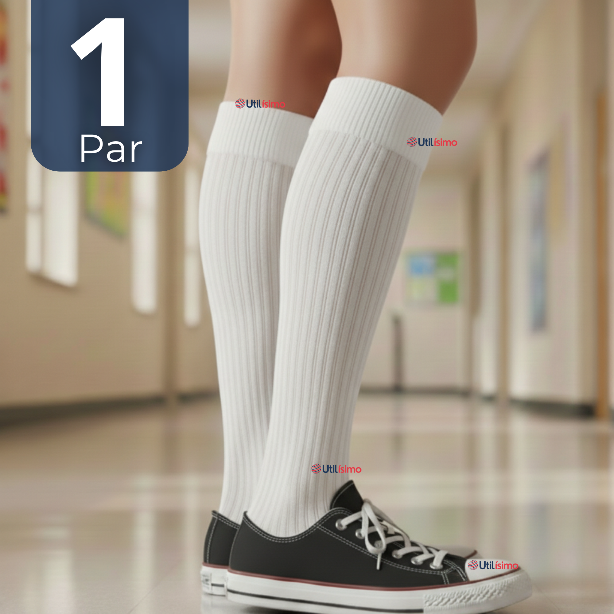 Completa el uniforme escolar con la máxima comodidad y durabilidad. Nuestros calcetines escolares largos en color blanco están diseñados pensando en la intensa actividad diaria de los estudiantes. Confeccionados en un tejido acrílico de alta calidad, ofrecen la calidez necesaria para las mañanas frías y la resistencia requerida para el uso cotidiano, manteniendo su forma y color lavado tras lavado.