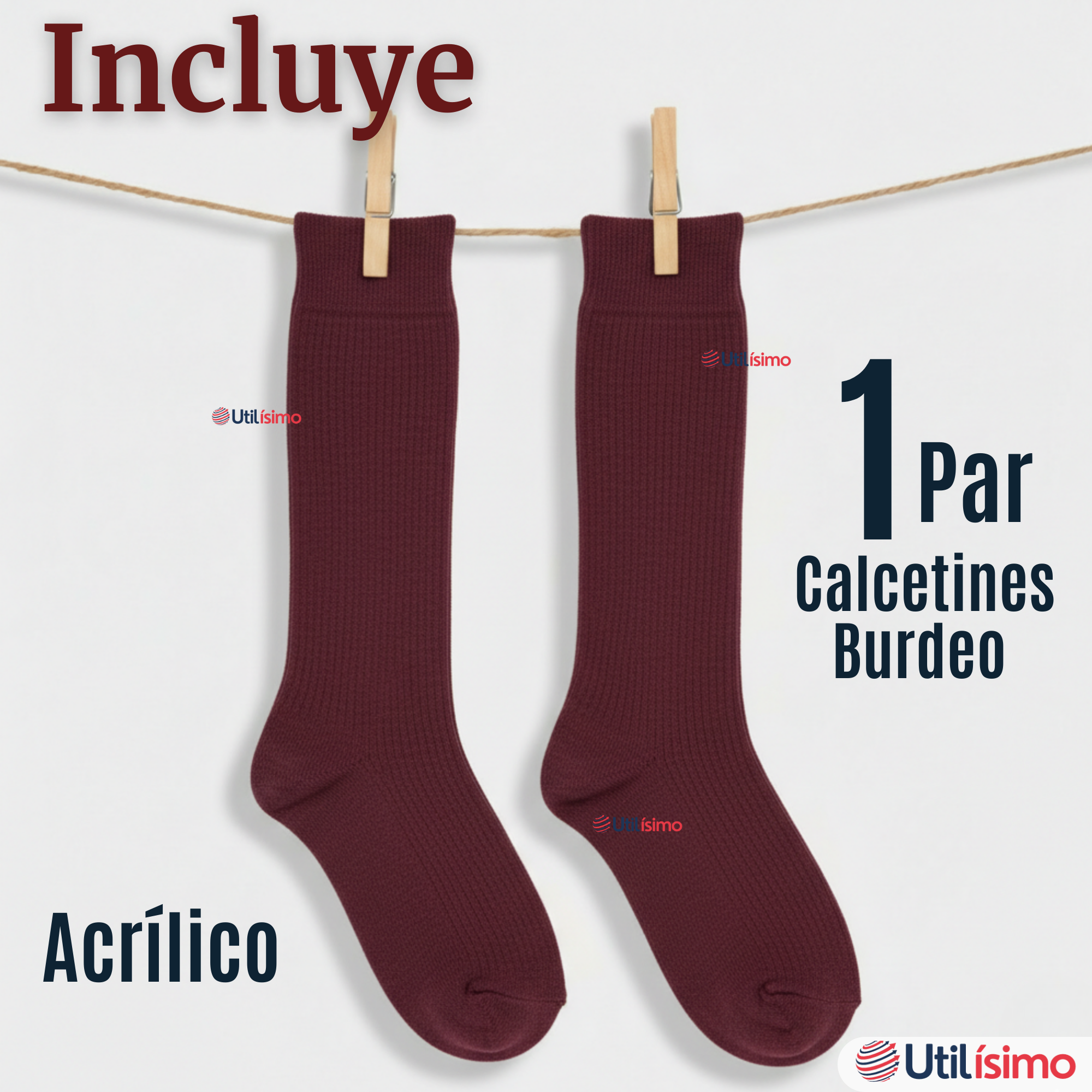 Incluye: 1 par de Calcetines Largo Color Burdeo.