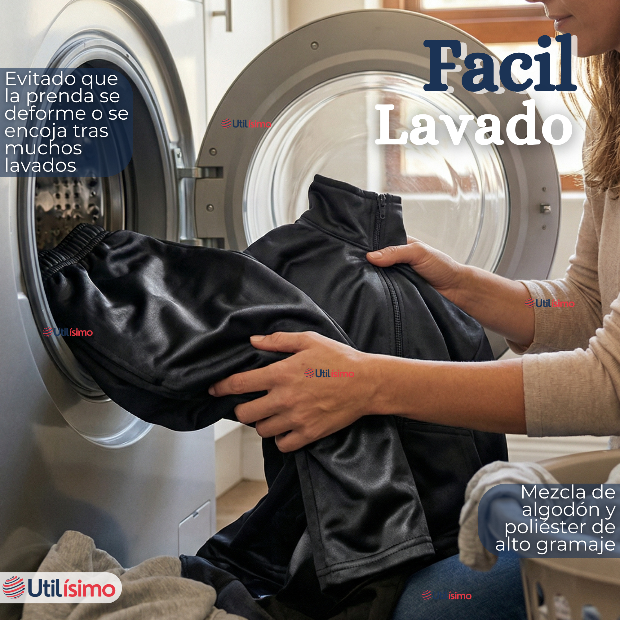 La gran ventaja de este conjunto es su confección en tela sintética de alto rendimiento. ¿El resultado? Una prenda que no se arruga, no se encoge y, lo mejor de todo, ¡se seca en tiempo récord! Es la solución perfecta para el ritmo de lavado constante de la etapa escolar; los colores permanecen vibrantes y profundos por mucho más tiempo que en otras fibras. Además, su diseño de corte recto en mangas y piernas asegura una ventilación constante y una comodidad sin presiones en muñecas o tobillos, siendo ideal para niños que prefieren una sensación de libertad total en su ropa diaria.