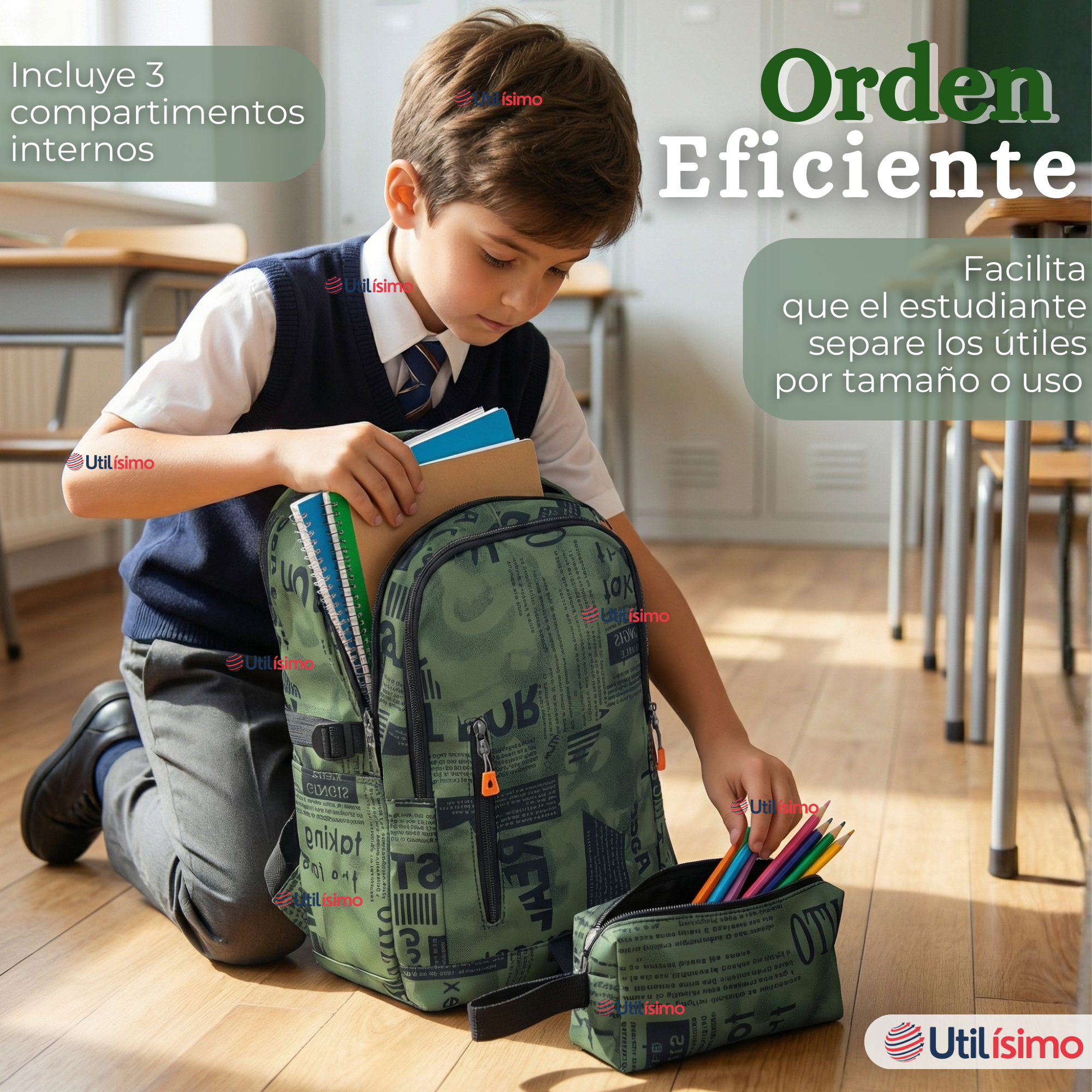 • Máxima Organización: Compartimentos amplios para libros, cuadernos y dispositivos, ayudando a los niños a mantener todo en su lugar desde el primer día.