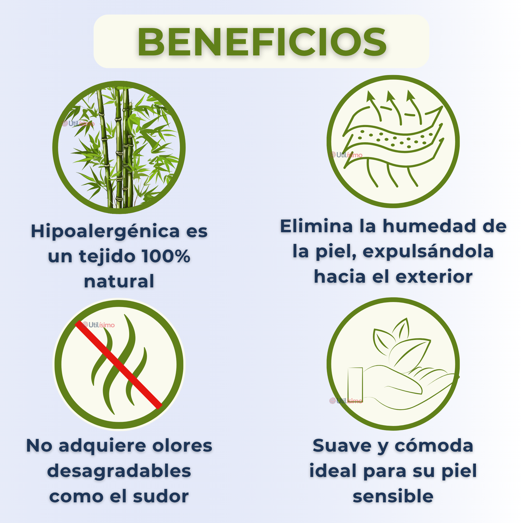 Características adicionales: Tejido ligero, elástico y antibacteriano gracias a la fibra de bambú