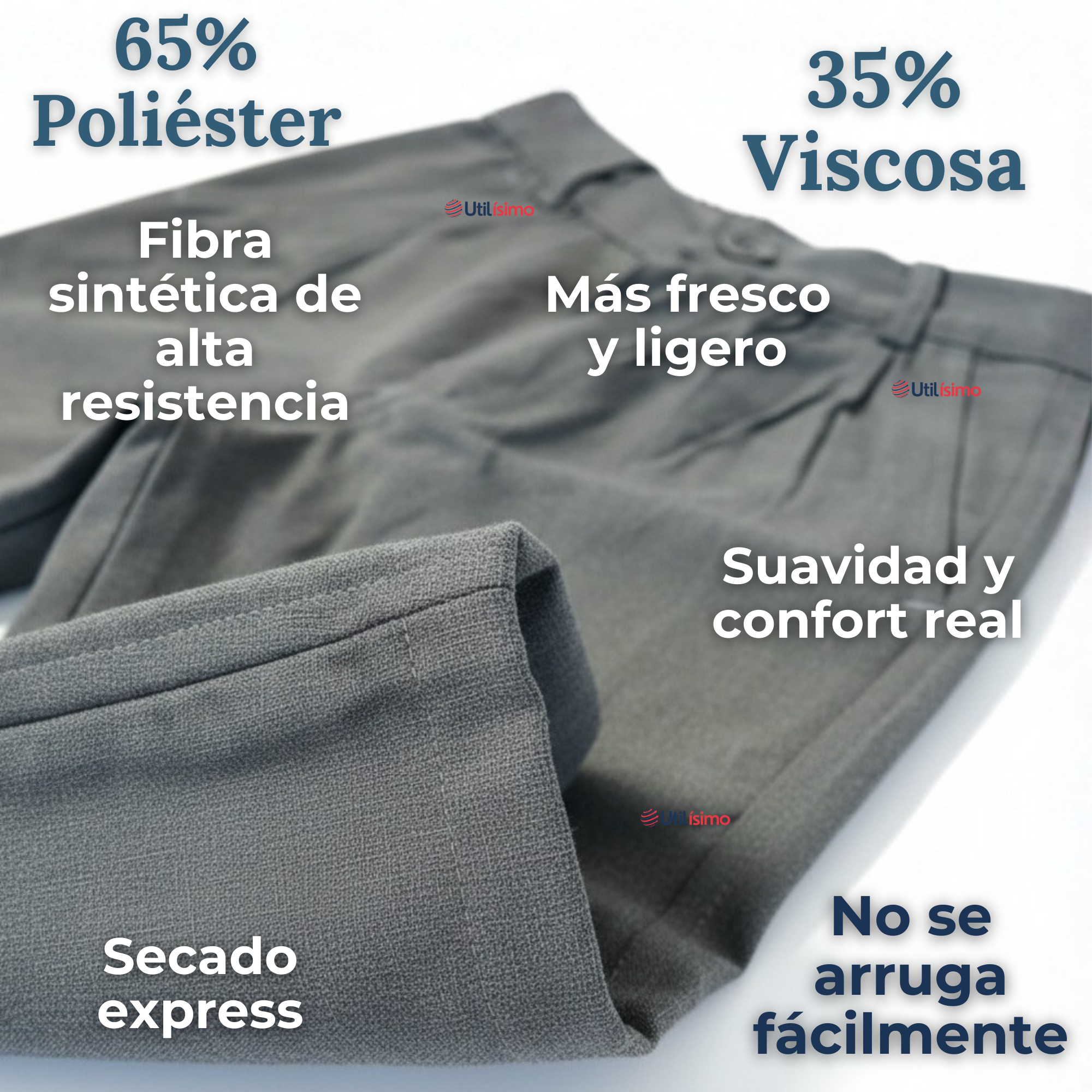 - Alta Durabilidad: Gracias a su composición mayoritaria de poliéster, la tela resiste el desgaste, las arrugas y el uso rudo diario, prolongando la vida útil del pantalón.