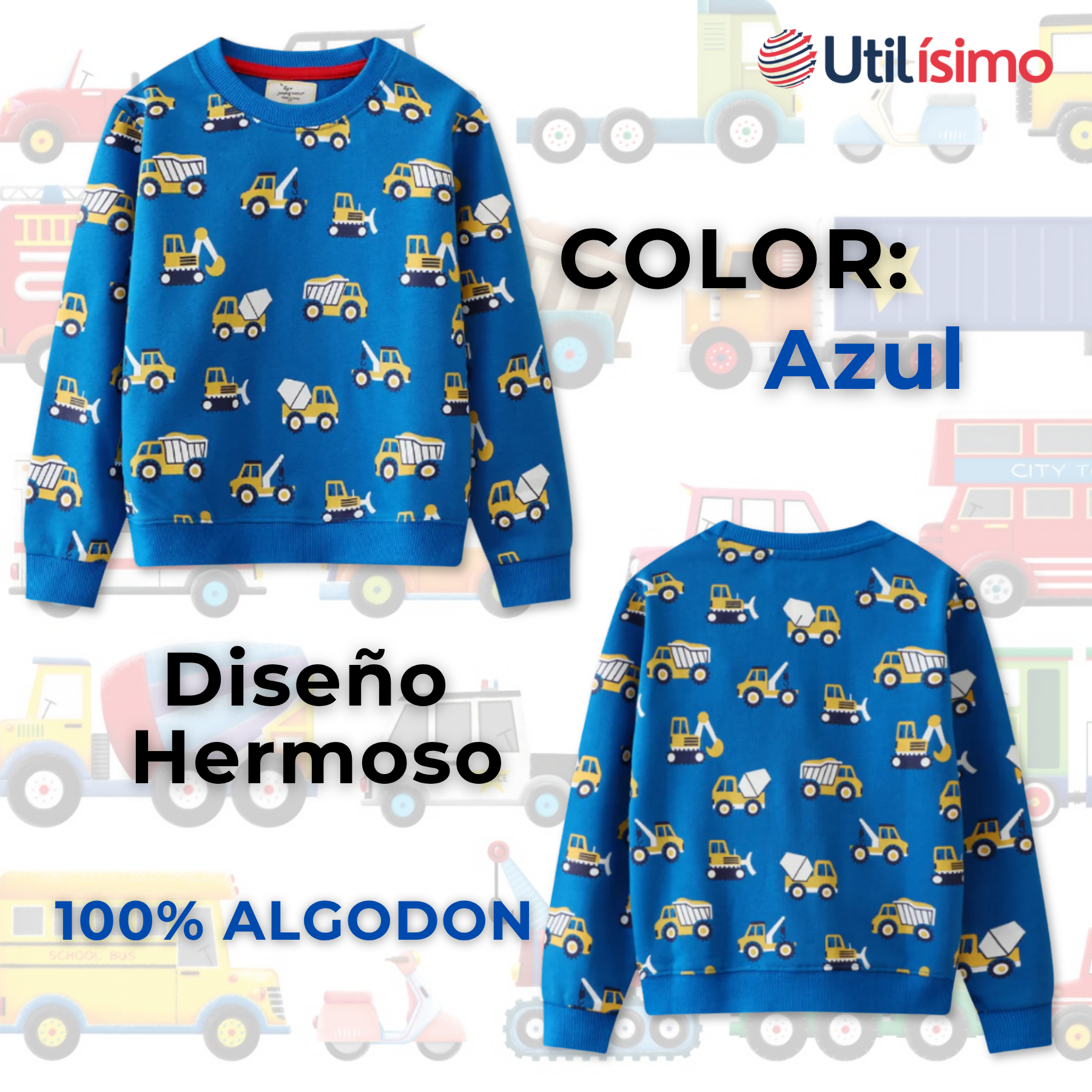 Polerón Algodón Cuello Redondo Niño Azul Claro Grúa