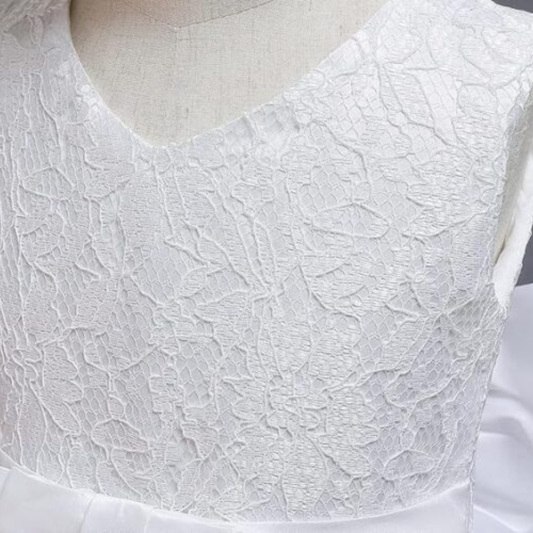 Este elegante vestido de fiesta con lazo y cintillo es una opción perfecta para resaltar la belleza de las más pequeñas. Este vestido combina un diseño clásico con detalles delicados, ideal para cualquier ocasión especial, ya sea una fiesta de cumpleaños, una boda o una celebración familiar.