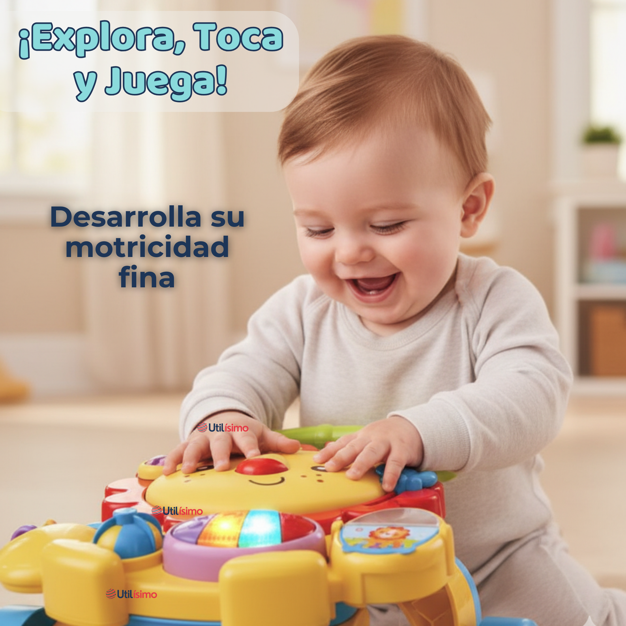 - Panel interactivo con teclado musical, luces y sonidos.